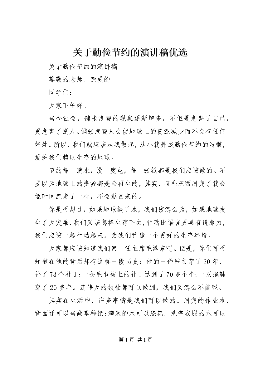关于勤俭节约的演讲稿优选 (2)