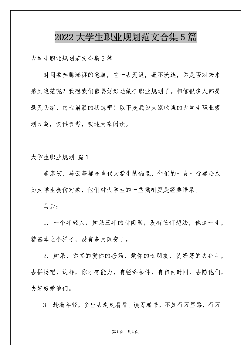 2022大学生职业规划范文合集5篇