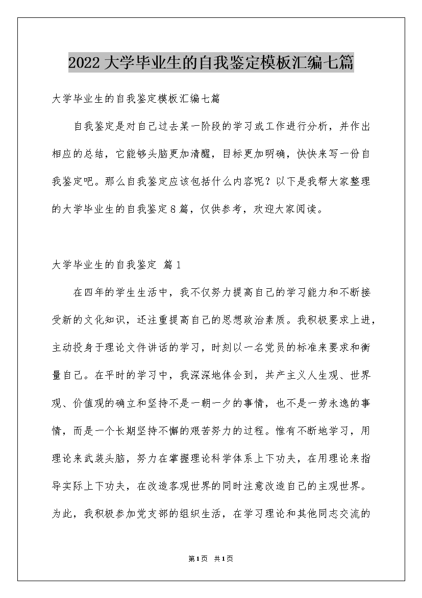 2022大学毕业生的自我鉴定模板汇编七篇