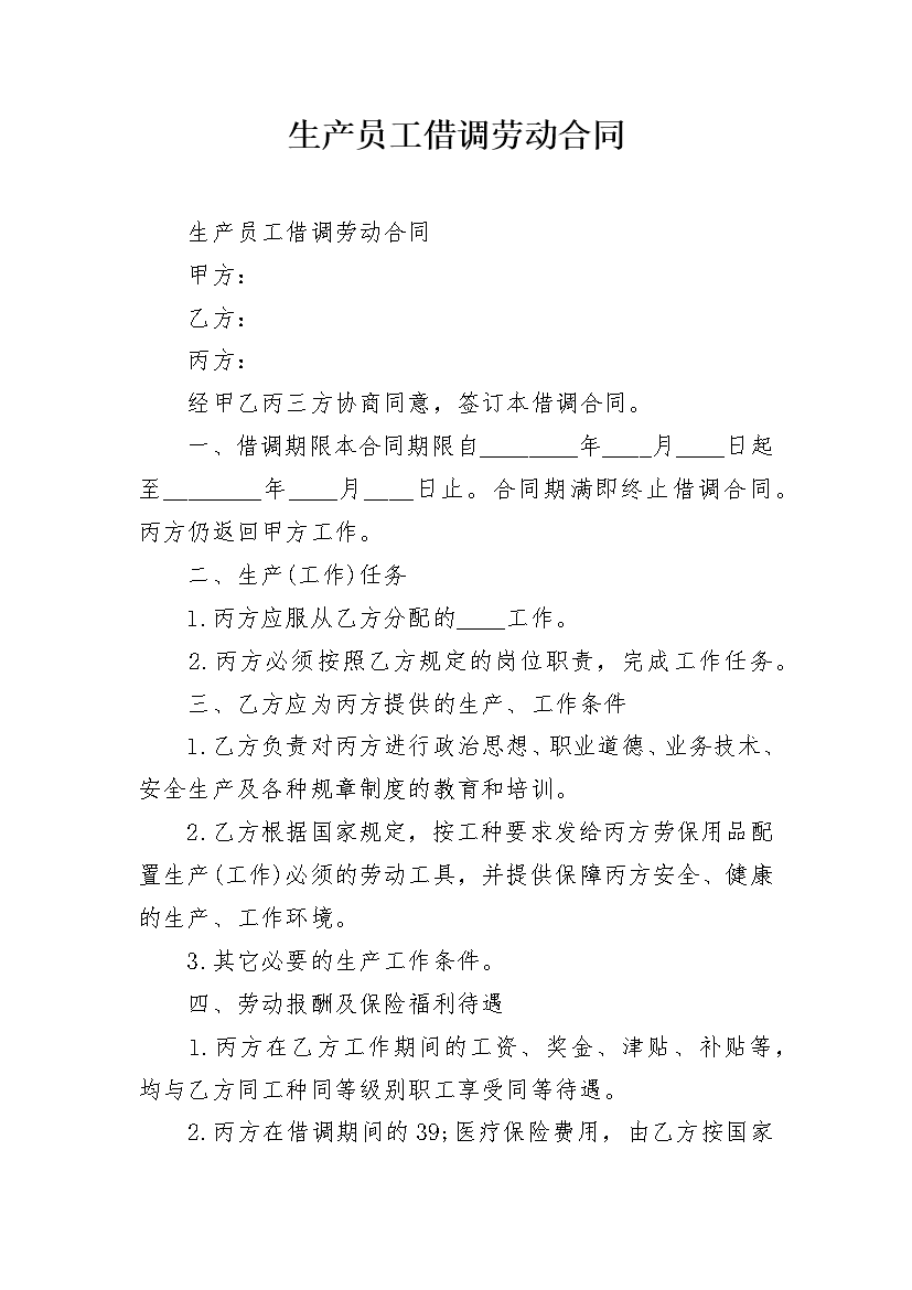 生产员工借调劳动合同