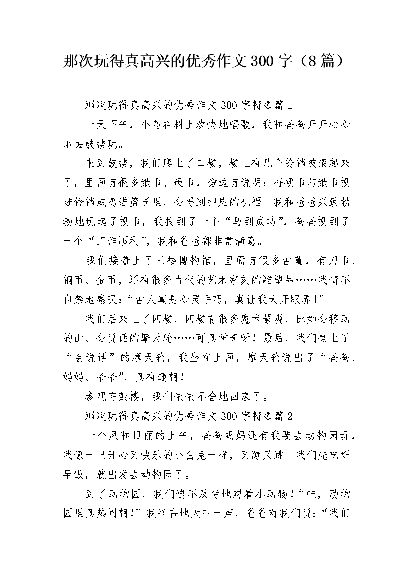 那次玩得真高兴的优秀作文300字(8篇)