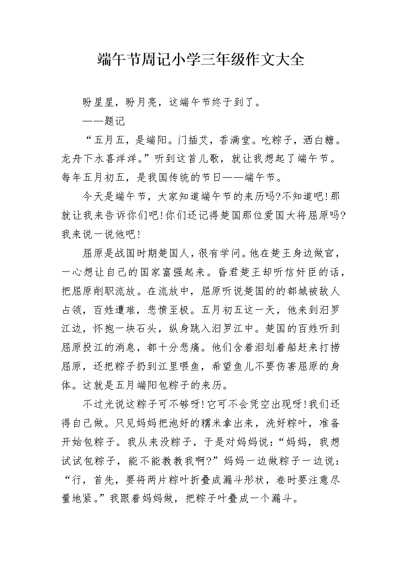 端午节周记小学三年级作文大全