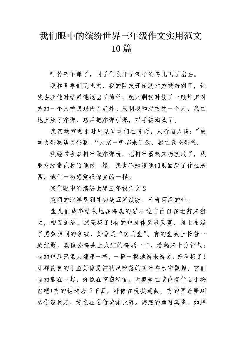 我们眼中的缤纷世界三年级作文实用范文10篇