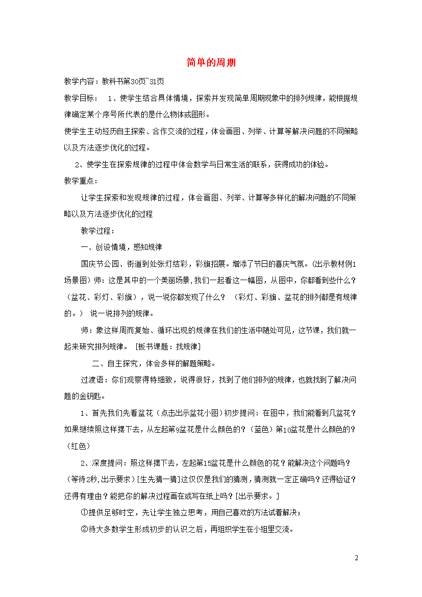 教案-全国-2019_四年级数学上册 第二单元 两、三位数除以两位数 简单的周期教案 苏教版