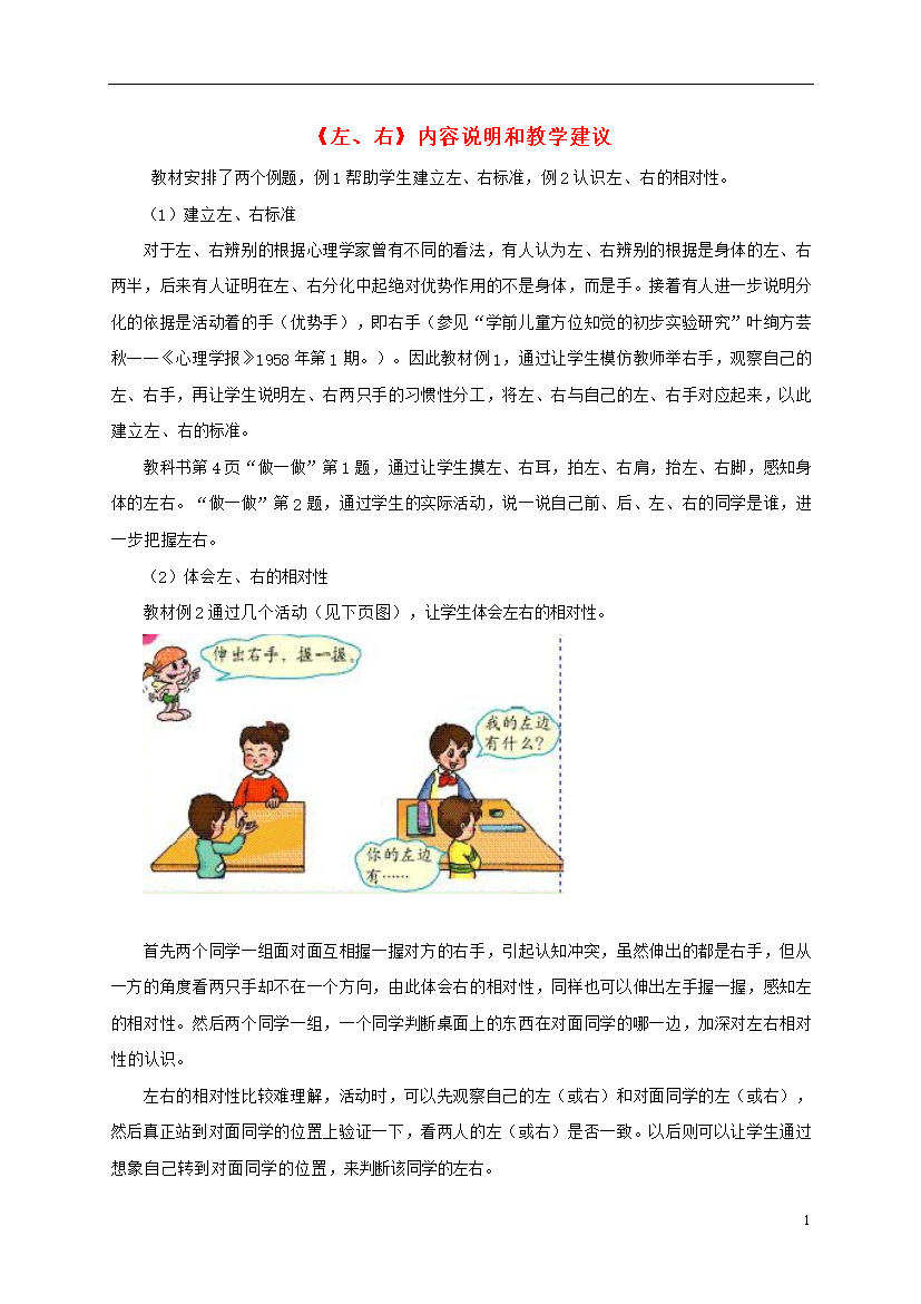 教案-全国-2012_一年级数学下册 左和右教学建议 西师大版