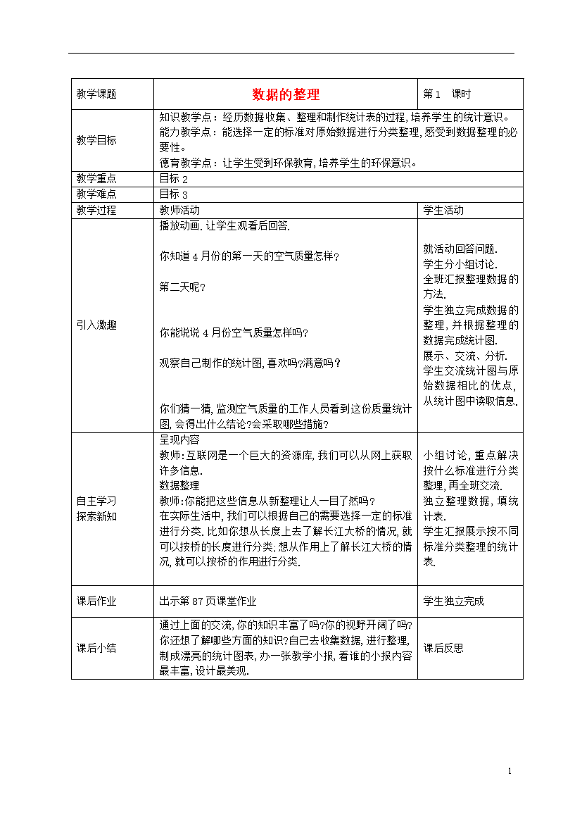教案-全国-2012_三年级数学下册 数据的整理 2教案 西师大版