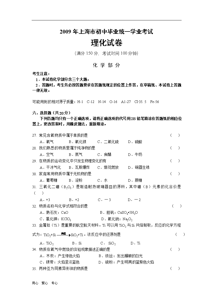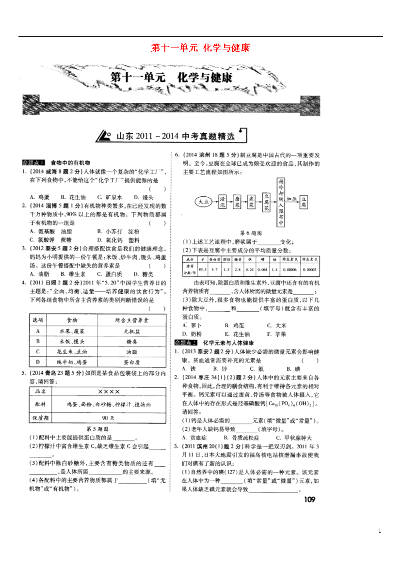 试题-全国-2015_2015中考化学一轮复习 第十一单元 化学与健康(扫描版,无答案)
