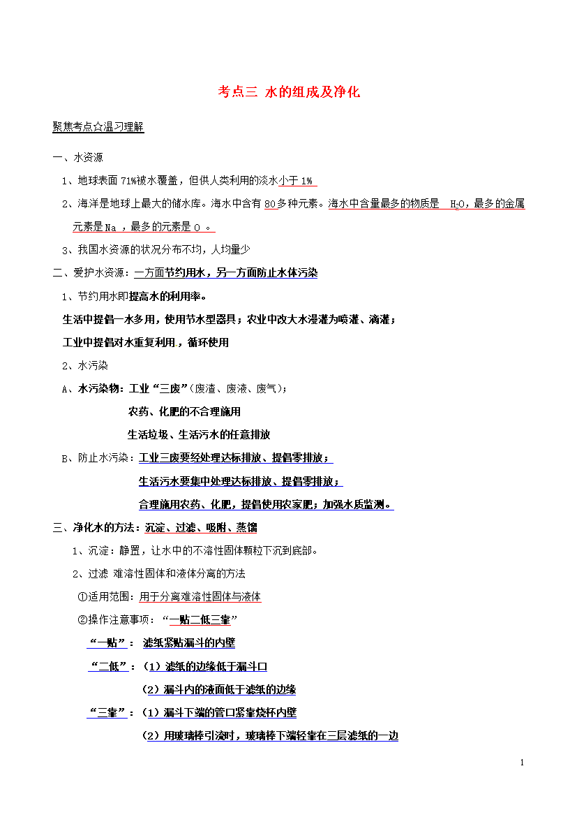 试题-全国-2016_2016年中考化学考点总动员系列 专题03 爱护水资源(水的组成、净化、水污染)