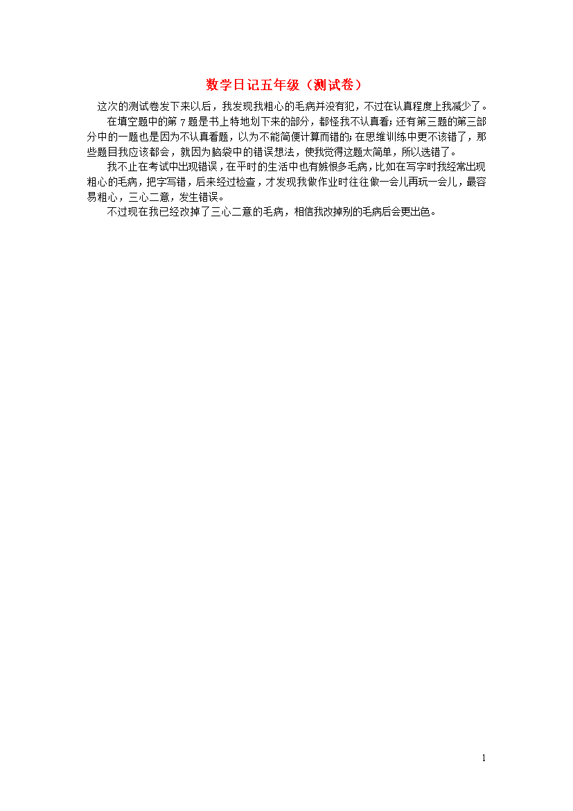 素材-全国-2020_小学数学 数学日记五年级(测试卷)