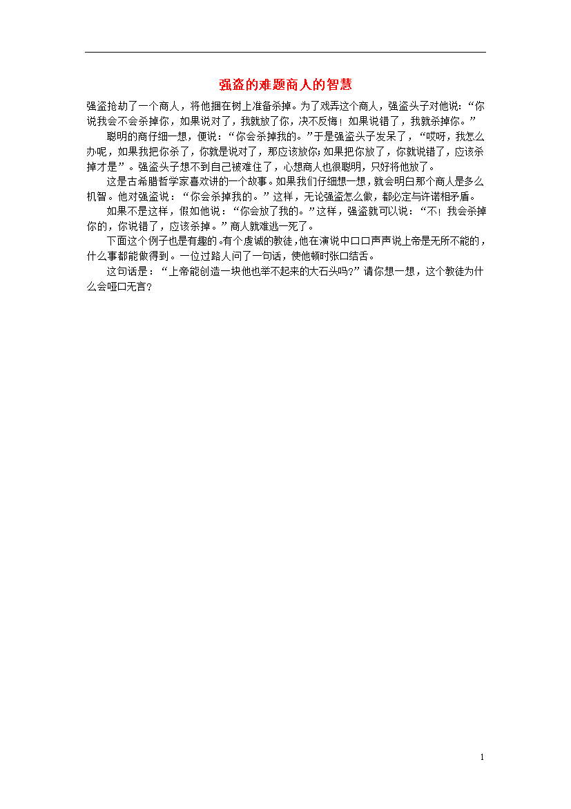 素材-全国-2020_小学数学 数学故事 强盗的难题商人的智慧