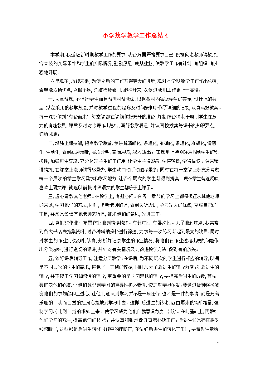素材-全国-2019_班主任必备 工作总结 小学数学教学工作总结4