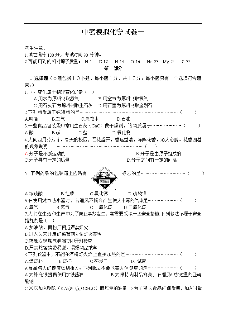 试题-全国-2007_2008中考化学复习资料大全[整理23套]