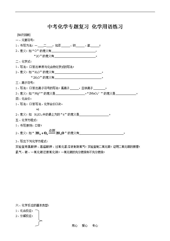 试题-全国-2009_中考化学专题复习 化学用语练习
