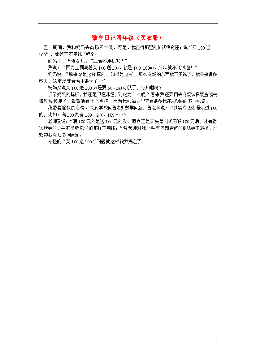 素材-全国-2020_小学数学 数学日记四年级(买衣服)