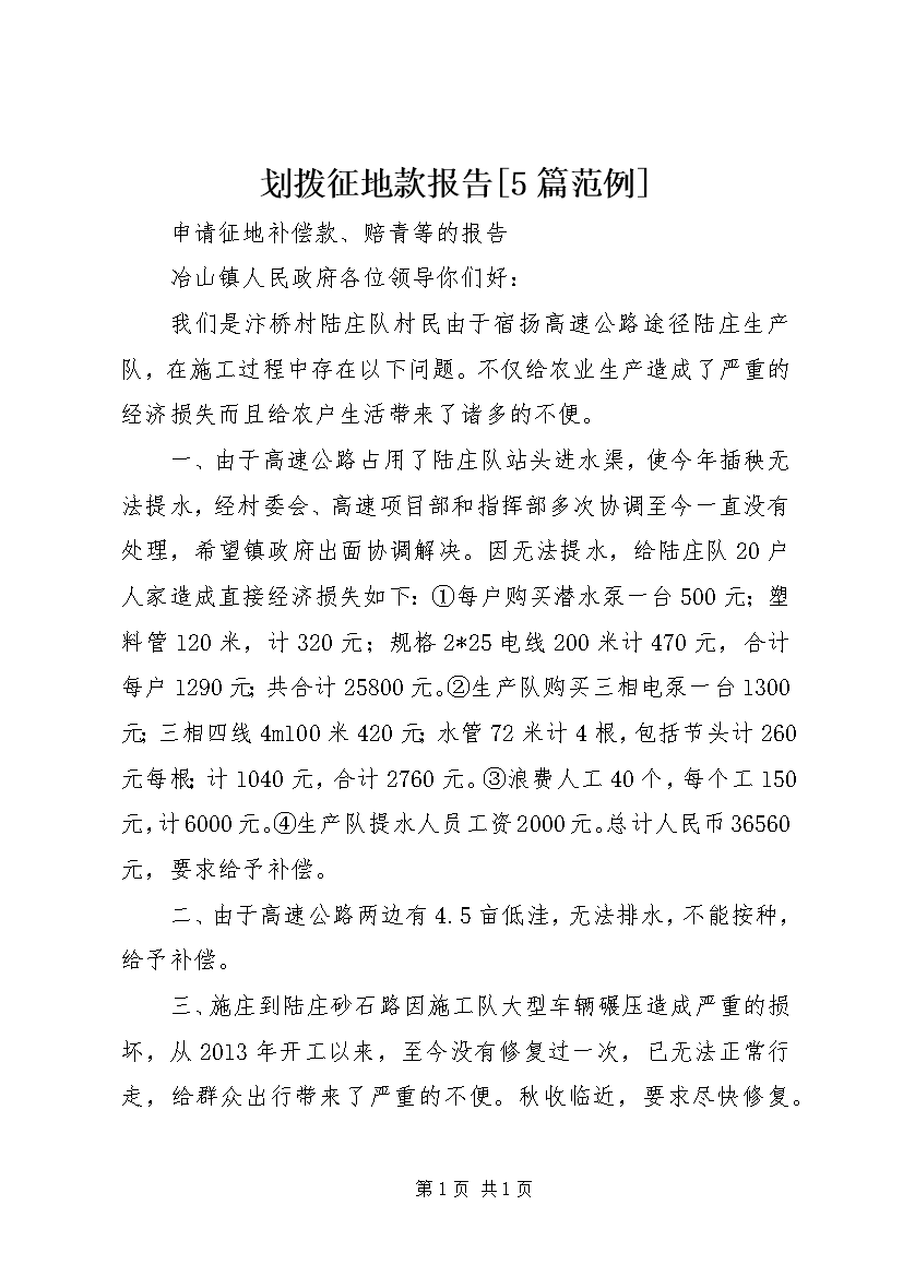 划拨征地款报告[5篇范例]