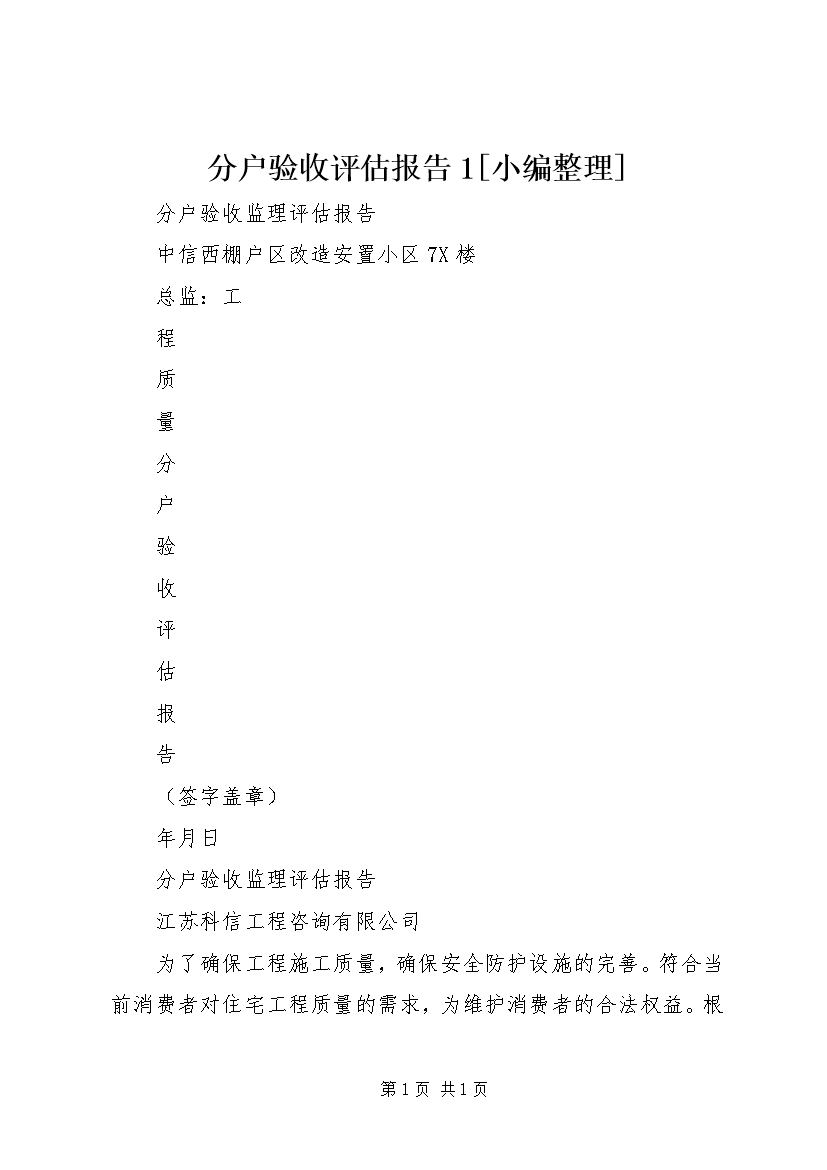 分户验收评估报告1[小编整理] (2)