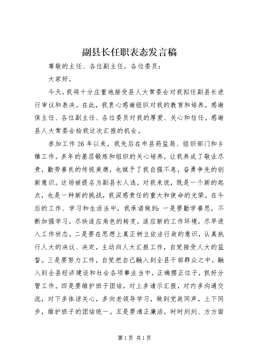 副县长任职表态发言稿