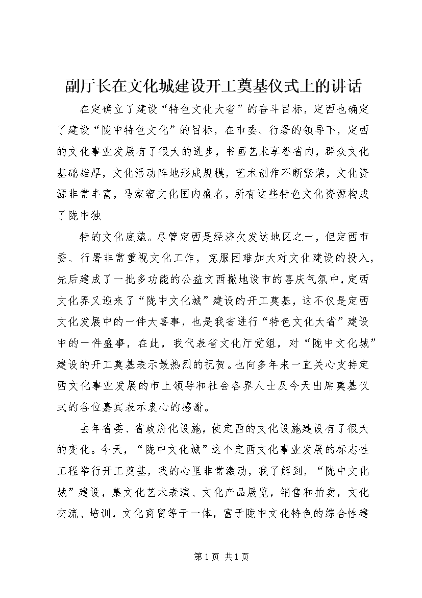 副厅长在文化城建设开工奠基仪式上的讲话 (3)