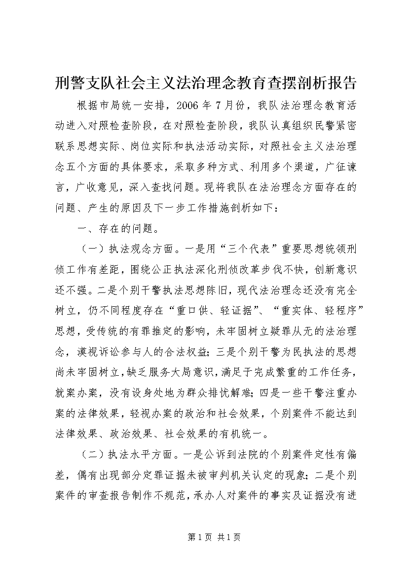 刑警支队社会主义法治理念教育查摆剖析报告