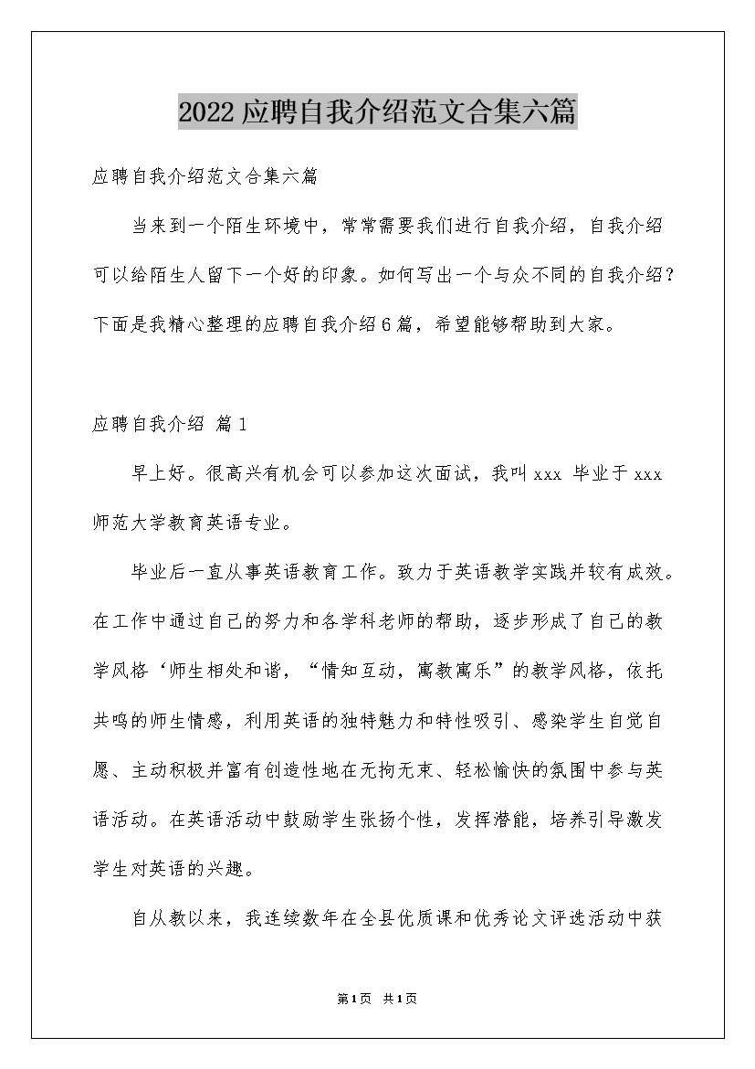 2022应聘自我介绍范文合集六篇