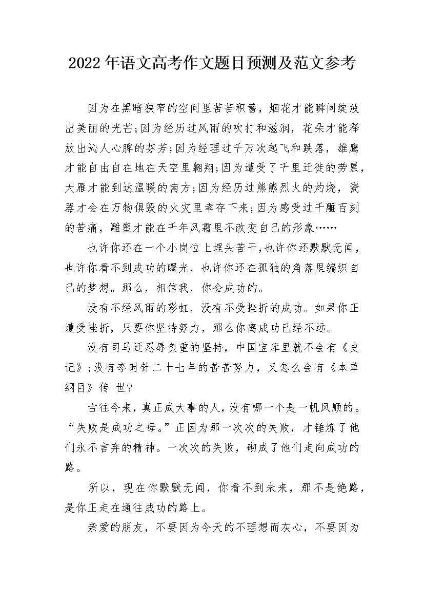 2022年全国高考作文题目预测与优秀素材范本_1