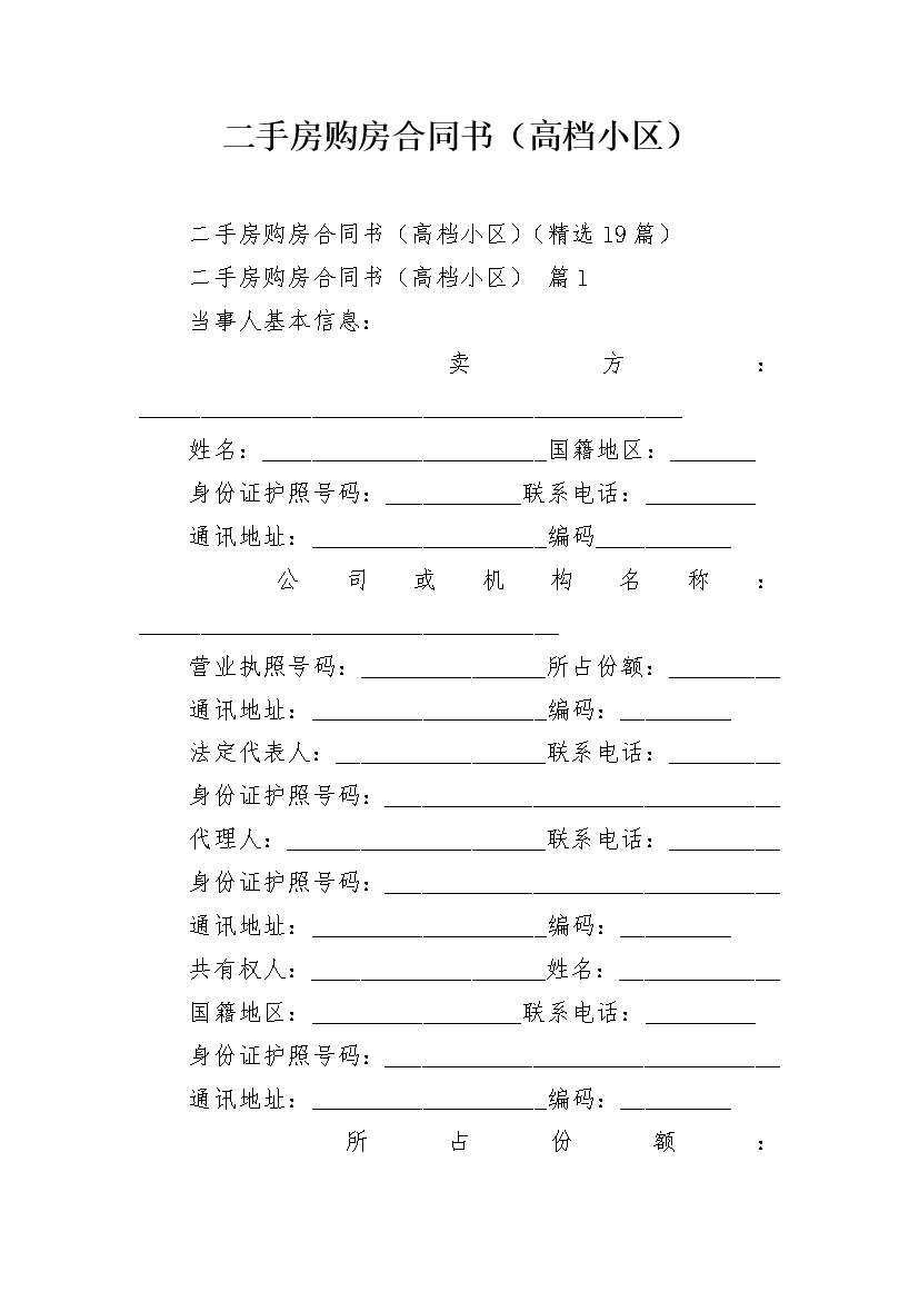 二手房购房合同书(高档小区)