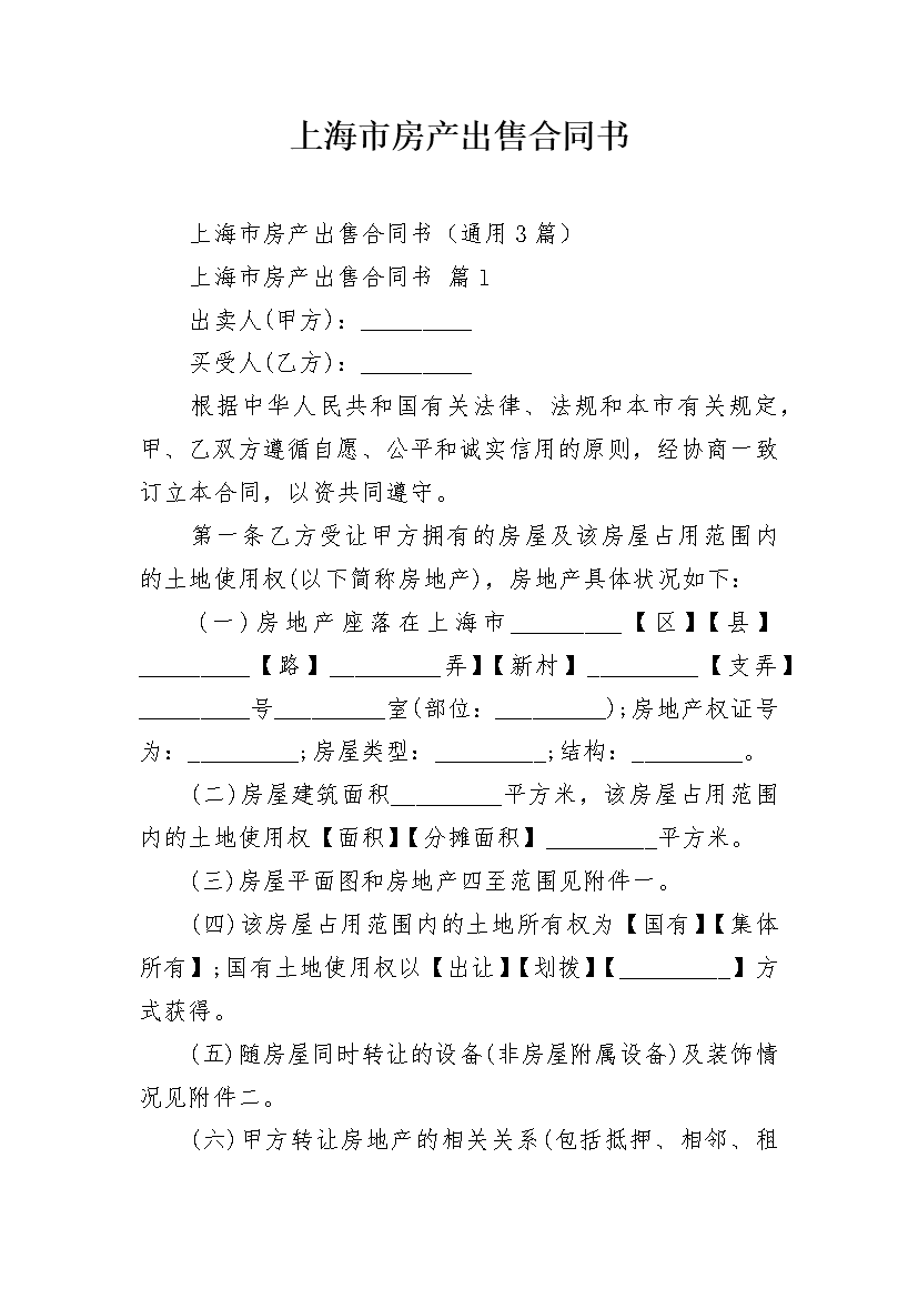 上海市房产出售合同书