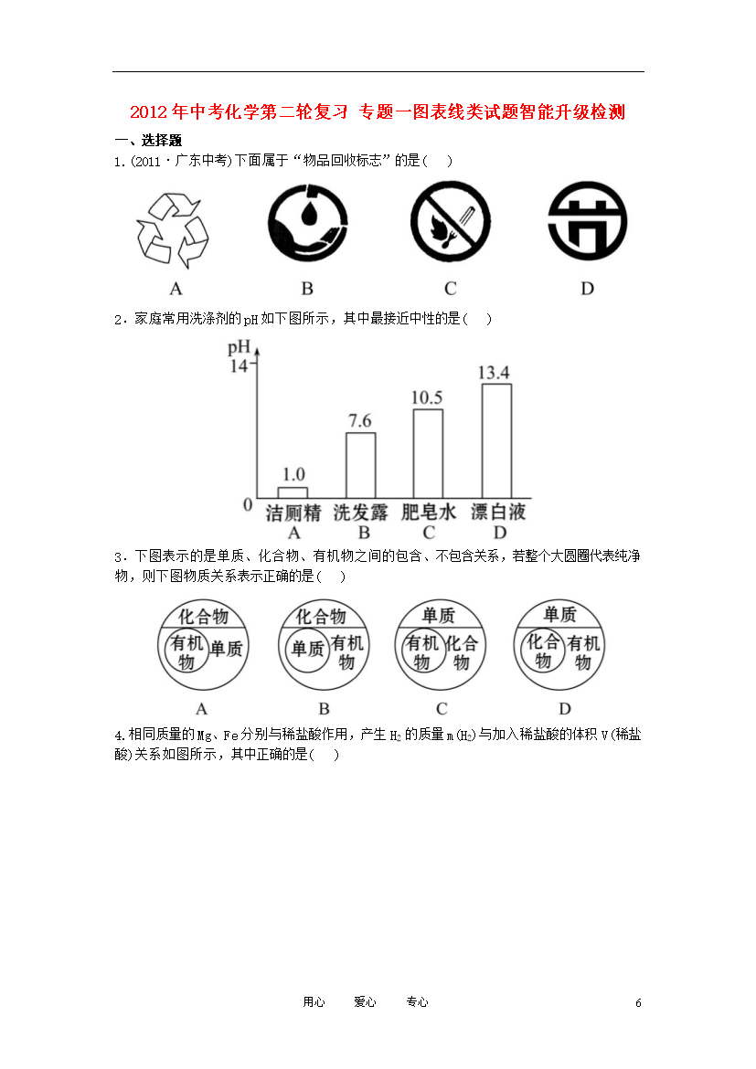 试题-全国-2012_2012年中考化学第二轮复习 专题一图表线类试题智能升级检测