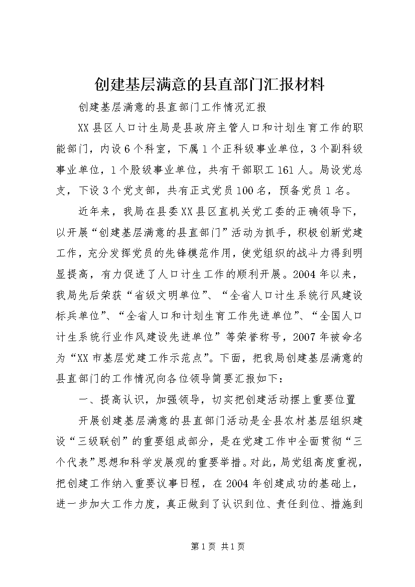 创建基层满意的县直部门汇报材料