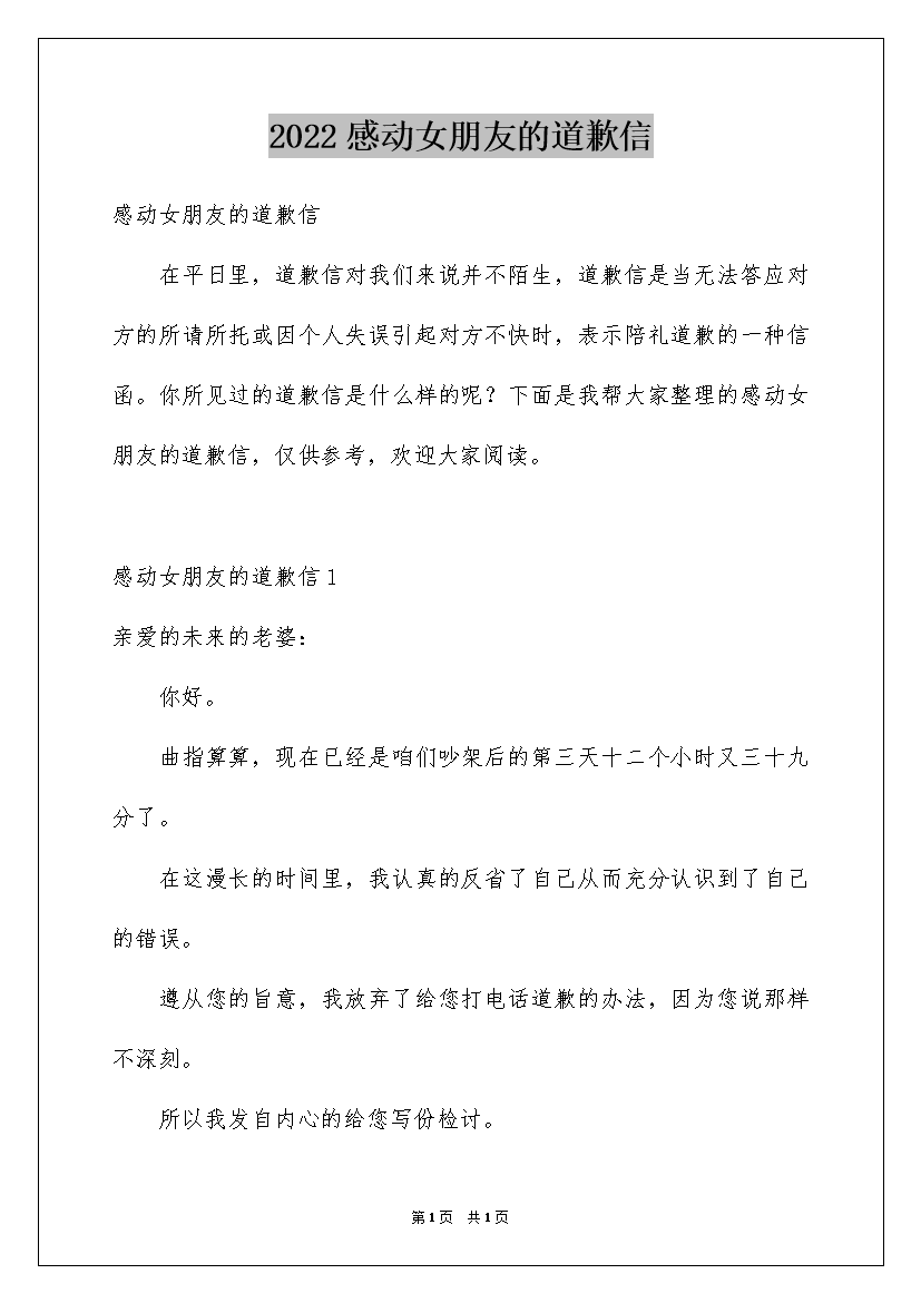 2022感动女朋友的道歉信