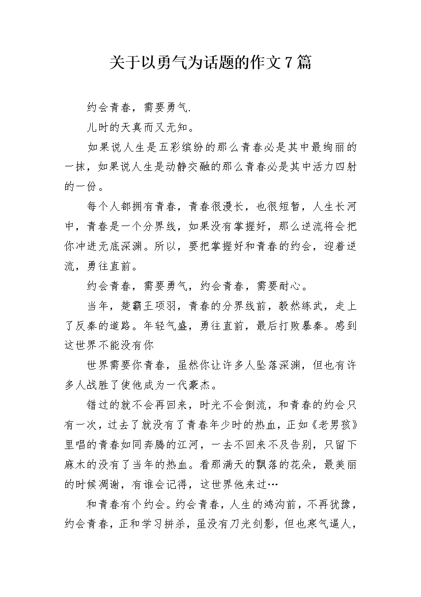 关于以勇气为话题的作文7篇
