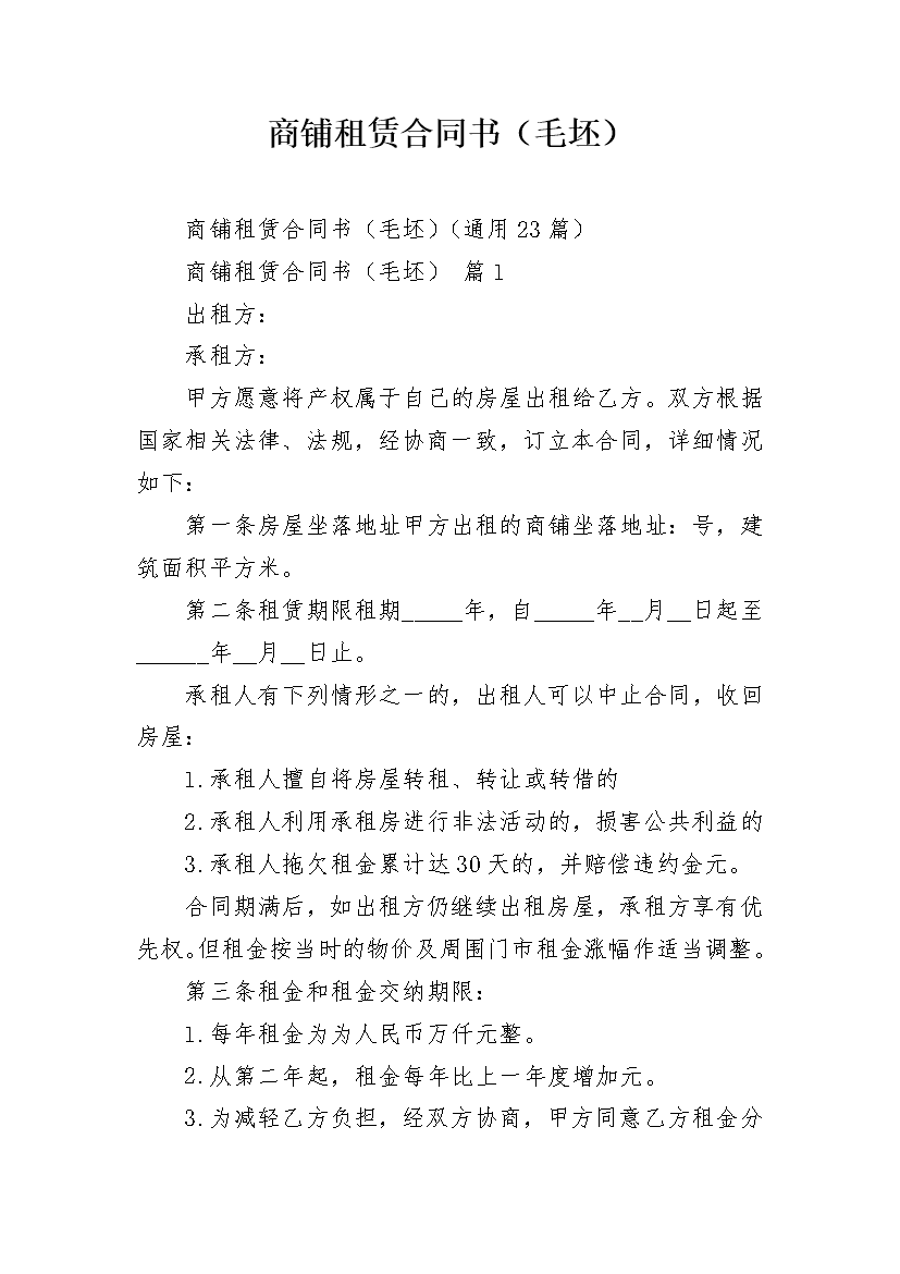 商铺租赁合同书(毛坯)