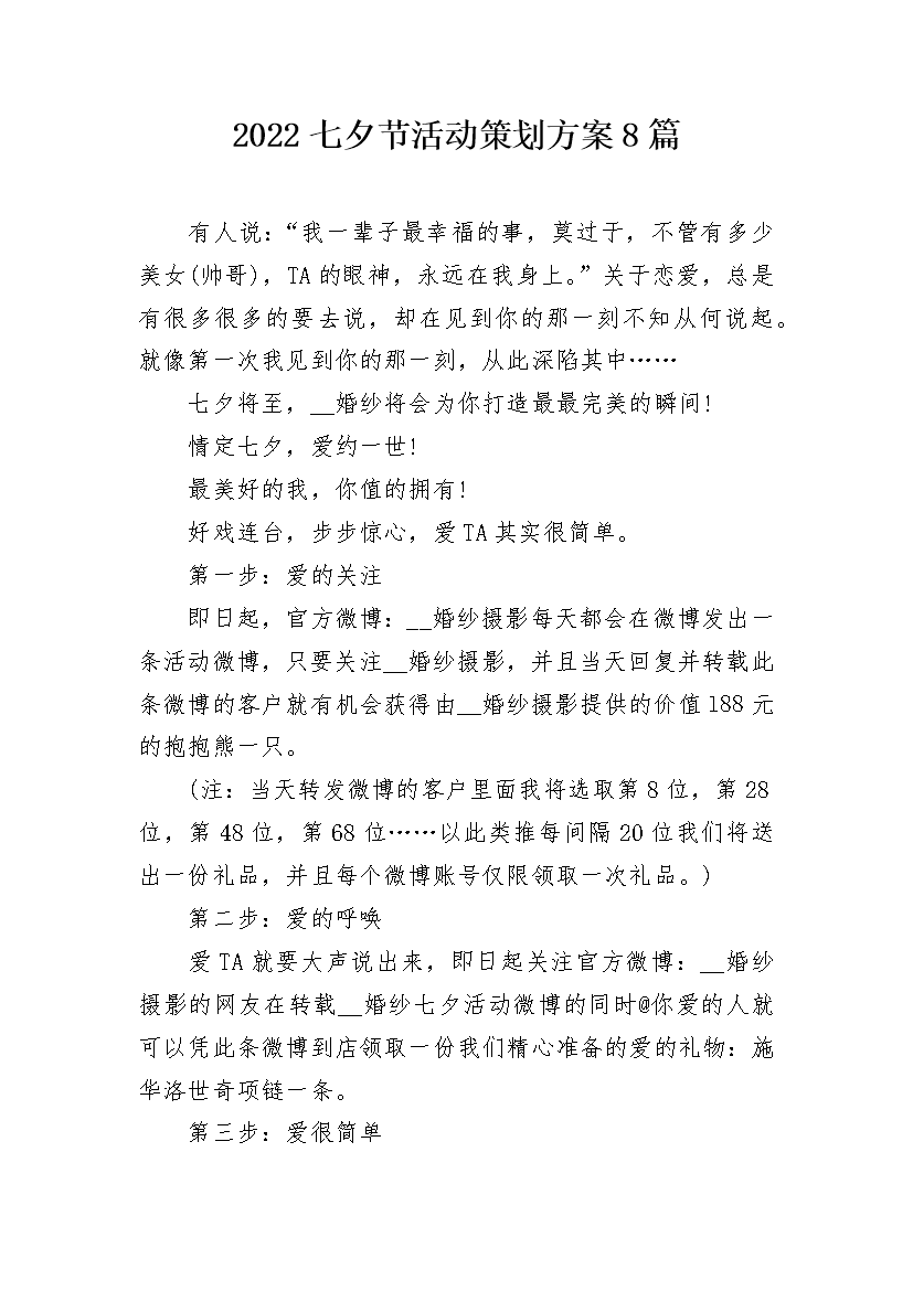 2022七夕节活动策划方案8篇