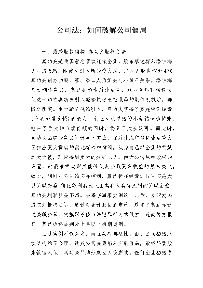 公司法:如何破解公司僵局