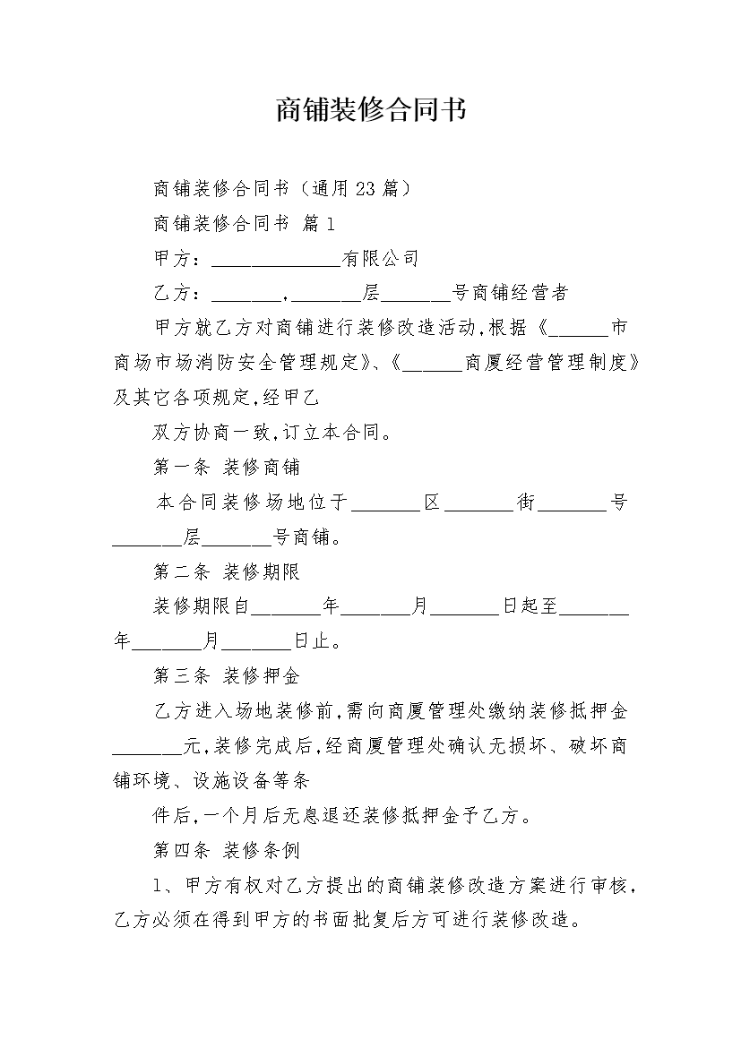 商铺装修合同书