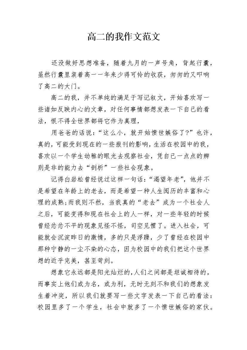 高二的我作文范文