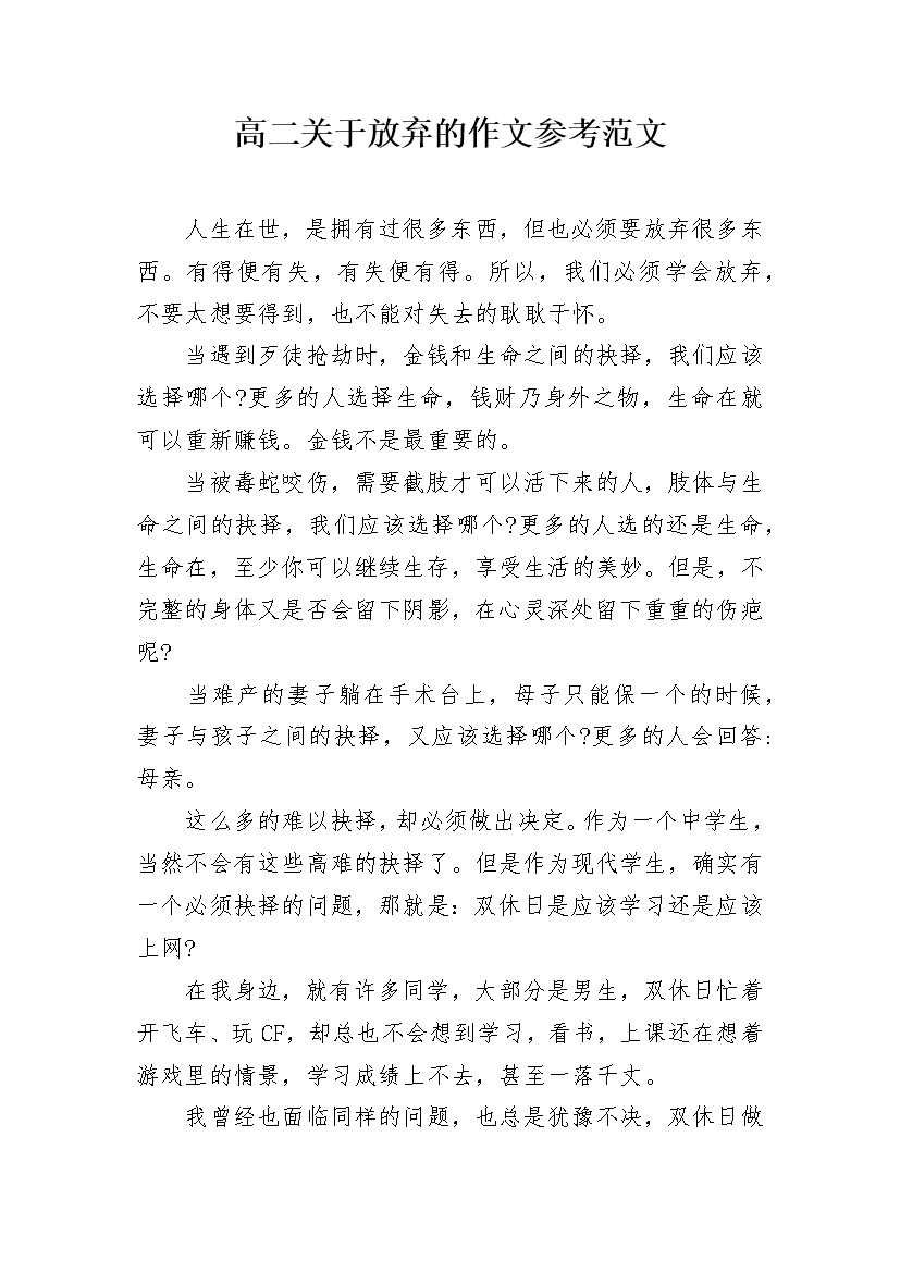 高二关于放弃的作文参考范文