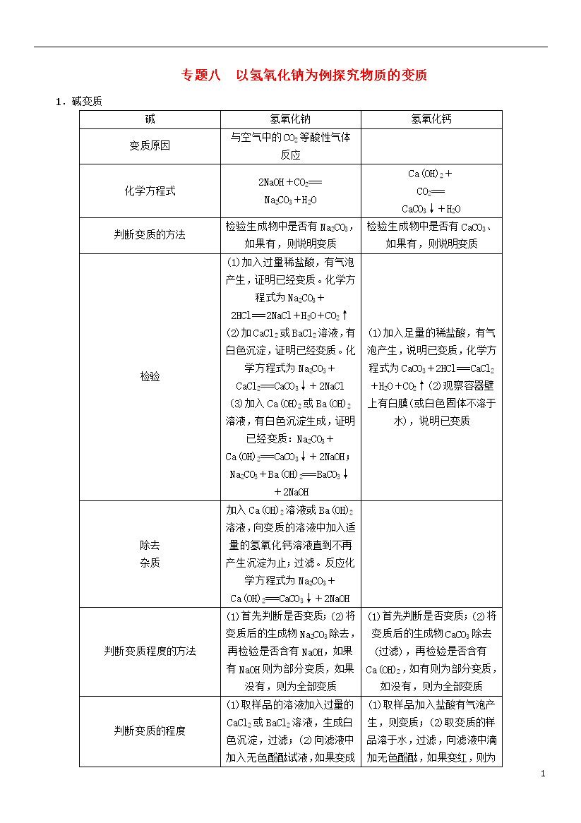 试题-全国-2016_中考命题研究(怀化)2016中考化学 重点题型突破 专题八 以氢氧化钠为例探究物质的变质(无答案)