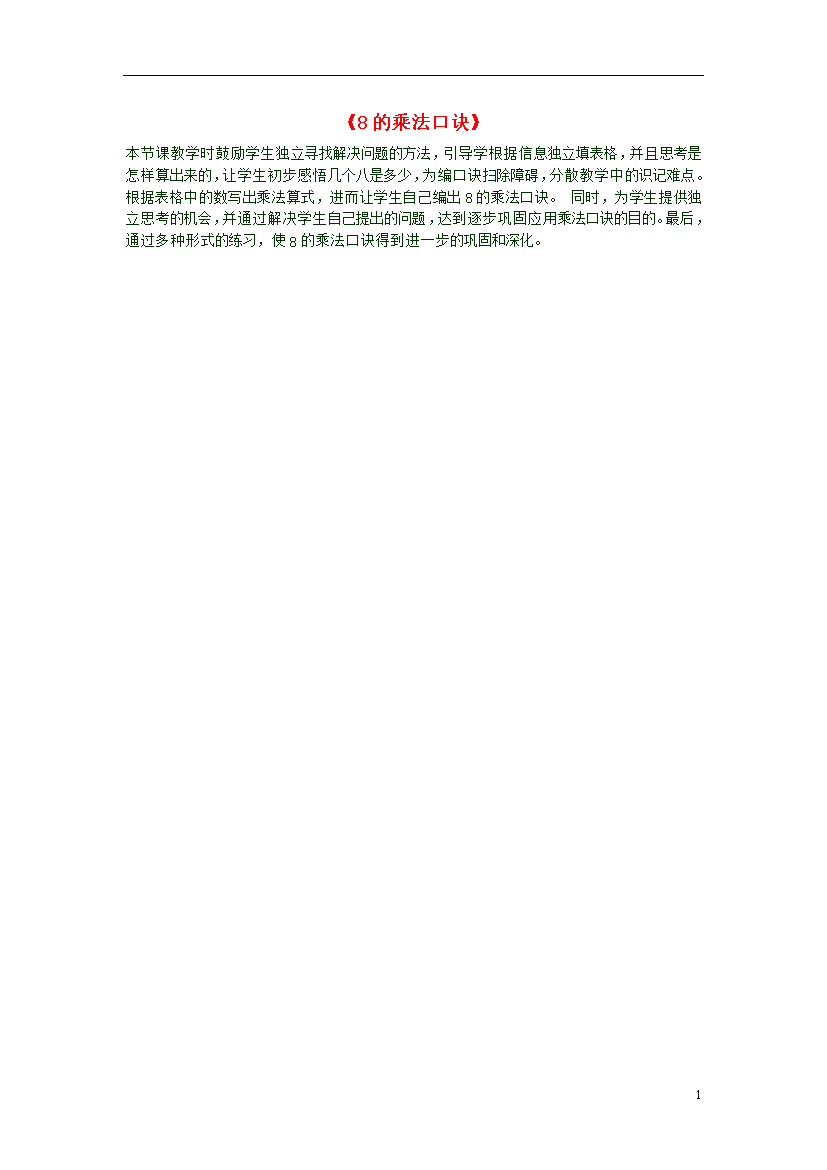素材-全国-2020_二年级数学上册《8的乘法口诀》教学反思 新人教版