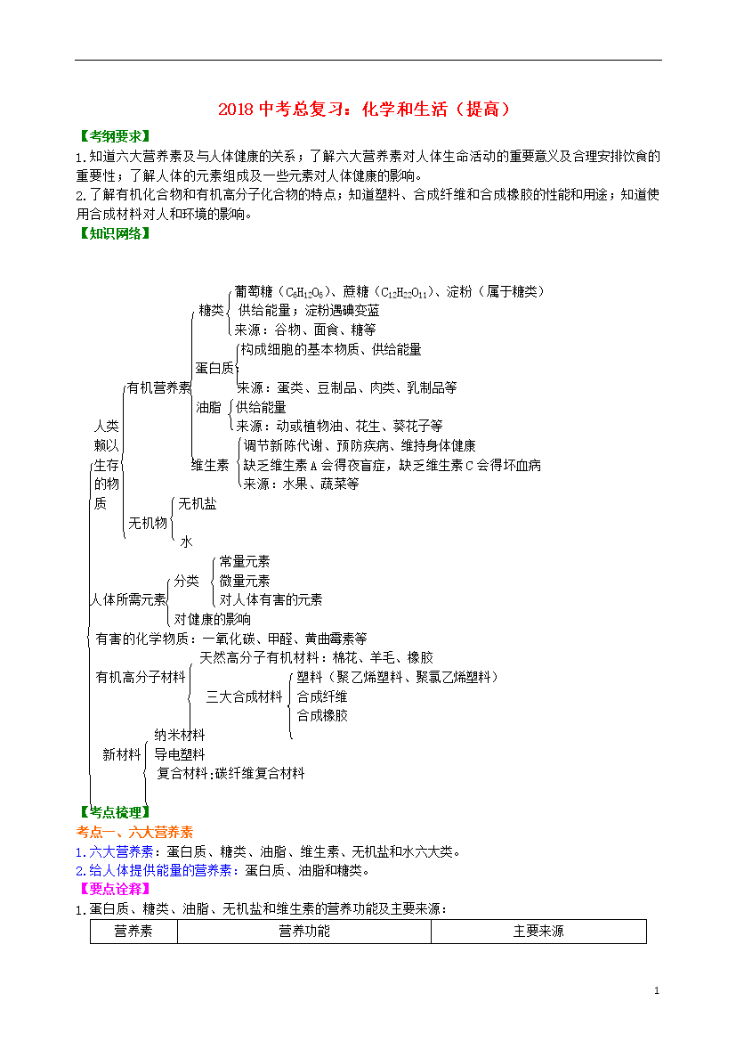 试题-全国-2018_2018中考化学总复习 化学和生活(提高)知识讲解(含解析)
