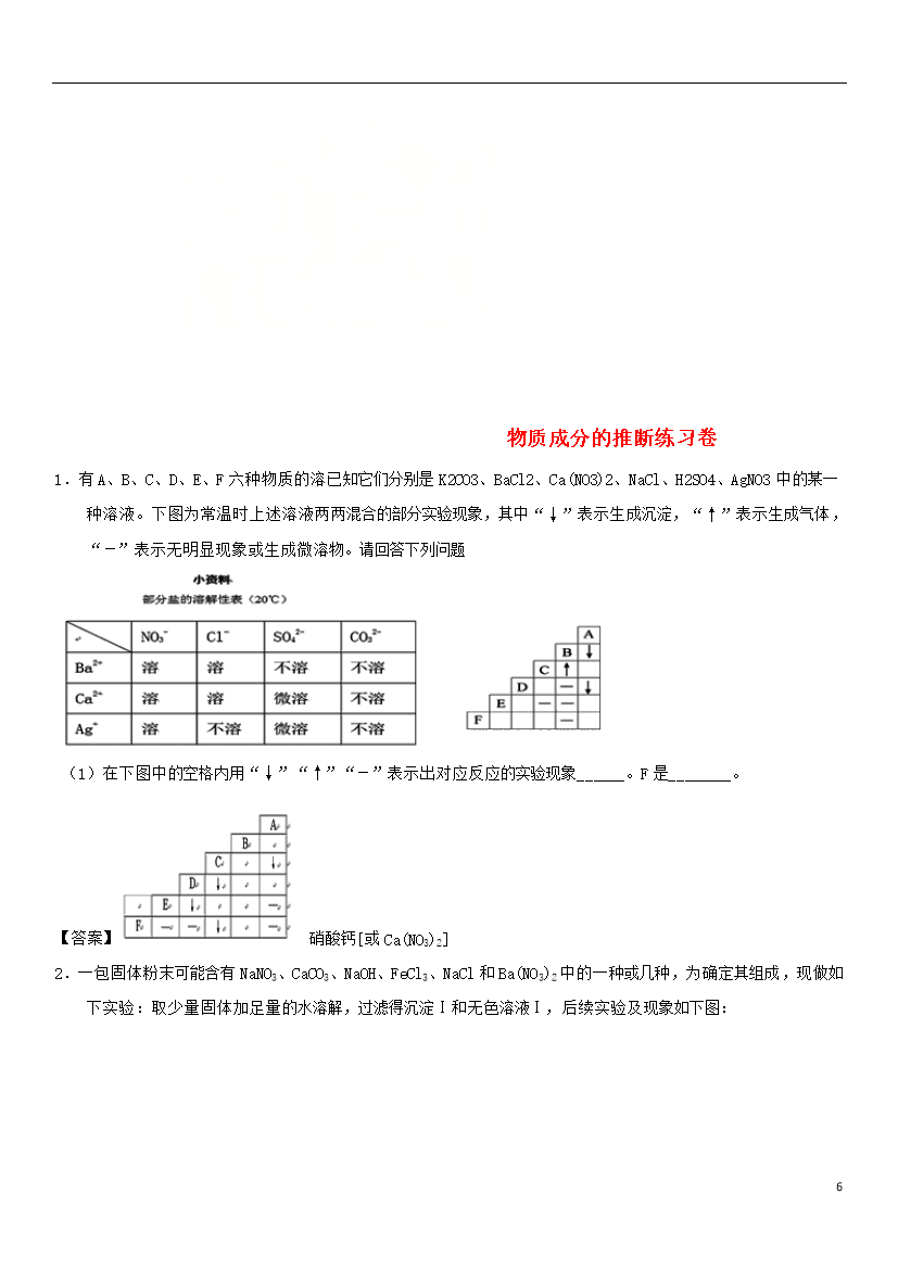 试题-全国-2018_2018年中考化学 物质成分的推断专题练习卷