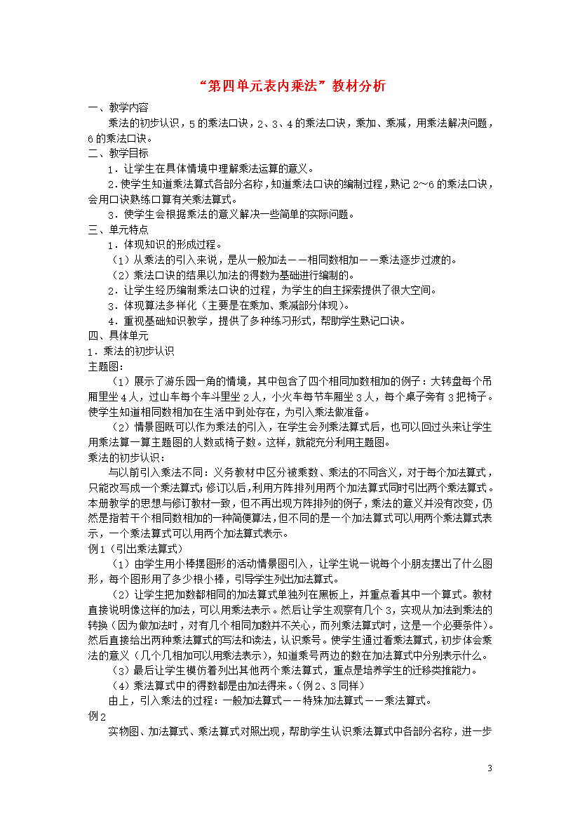 素材-全国-2019_2019年秋二年级数学上册 第4单元 表内乘法(一)教材分析 新人教版