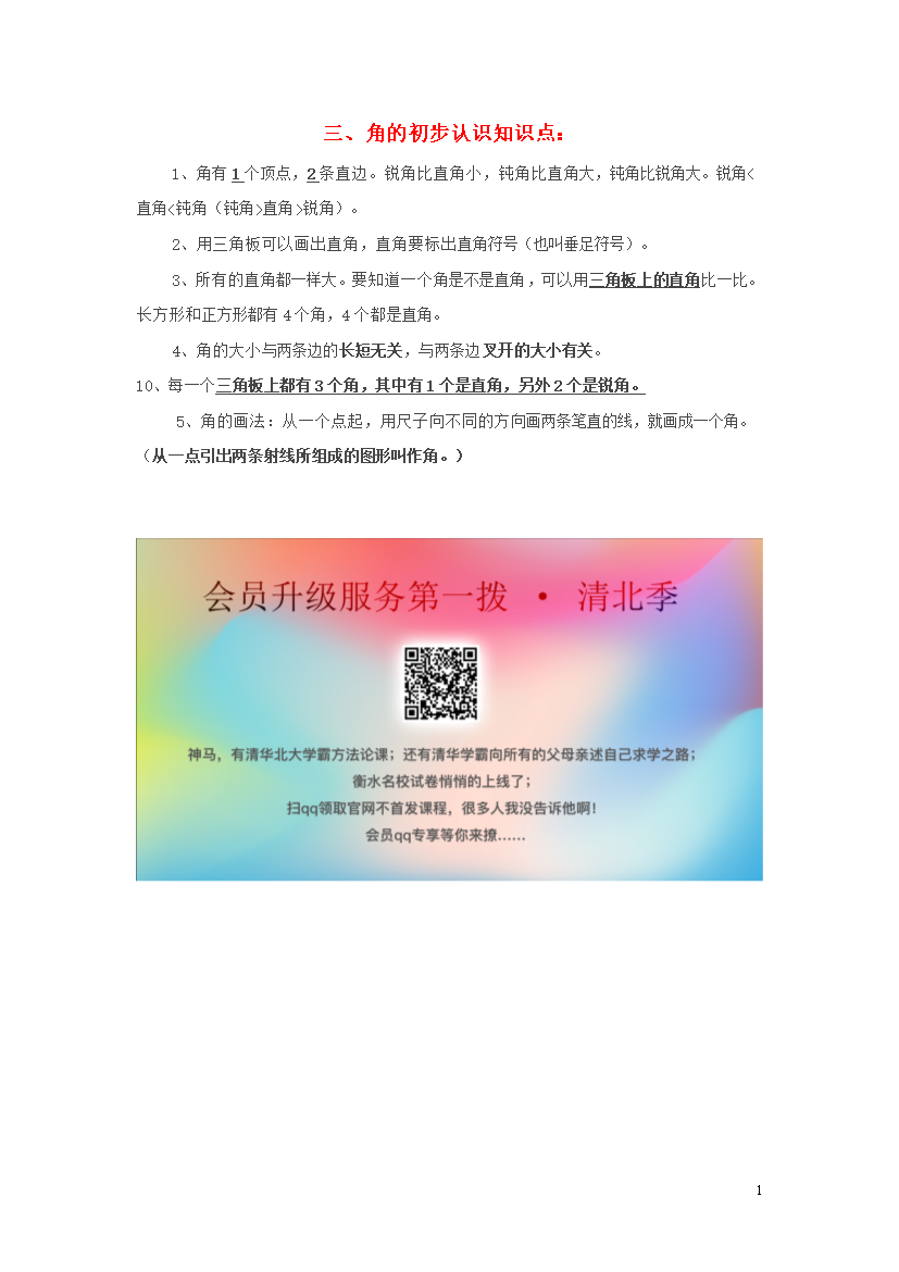 素材-全国-2019_2019年秋二年级数学上册 第3单元 角的初步认识归纳总结 新人教版