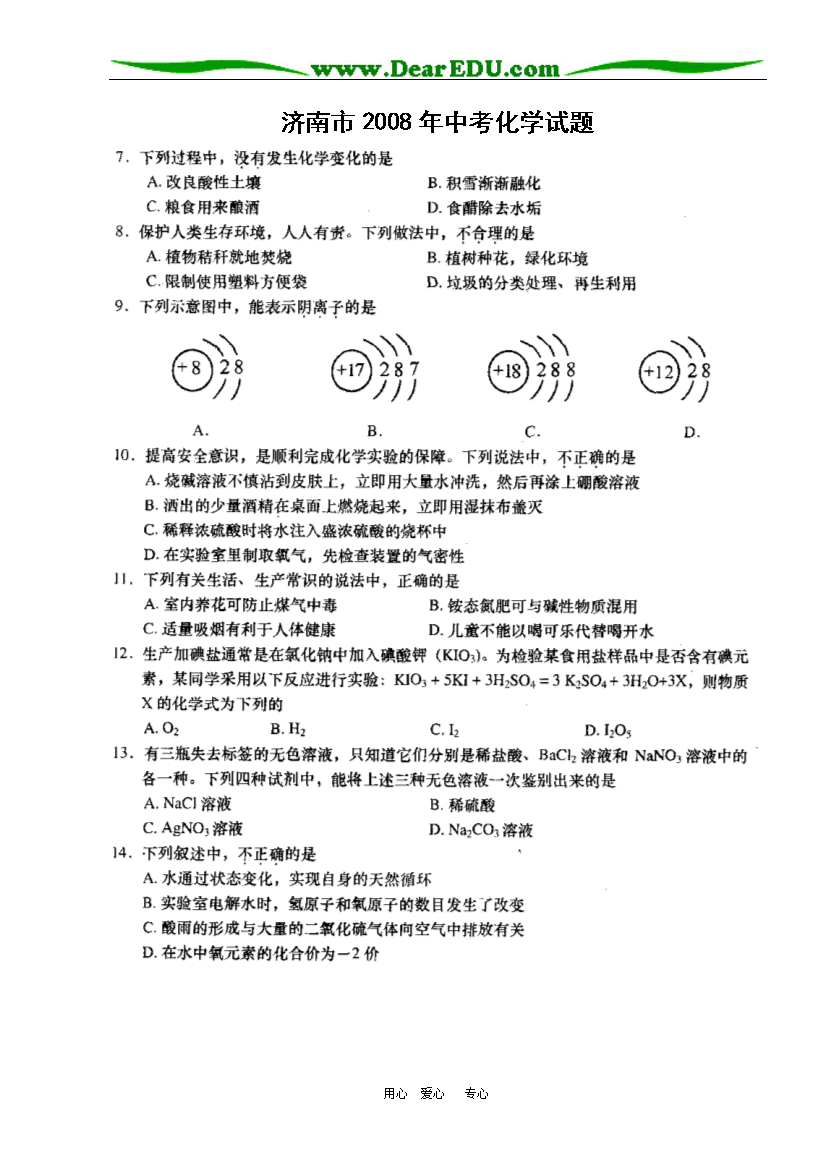 试题-山东-2008_2008年山东省济南市中考化学试题