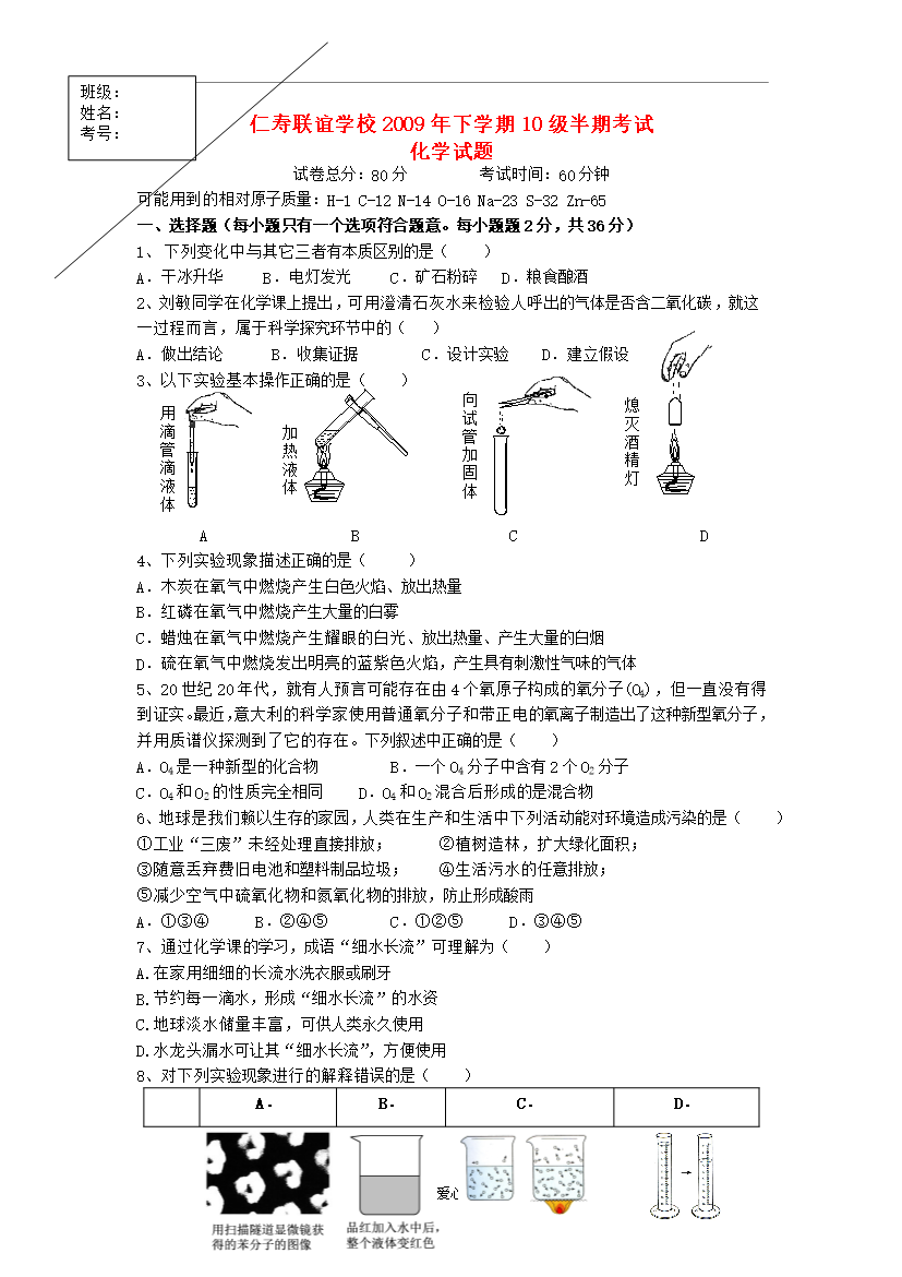 试题-四川-2009_四川省仁寿县联谊2009年九年级化学下学期半期考试试题全国通用