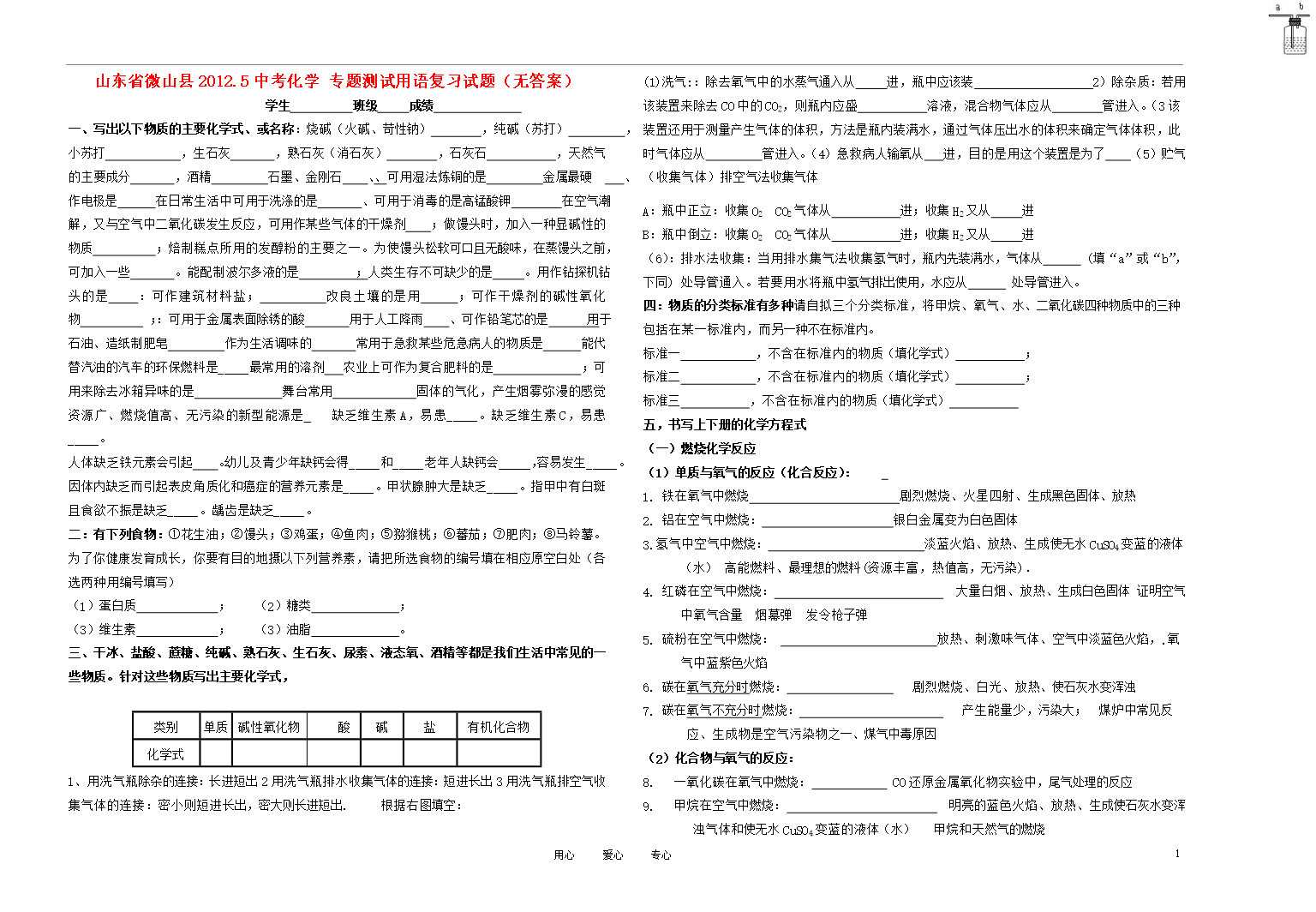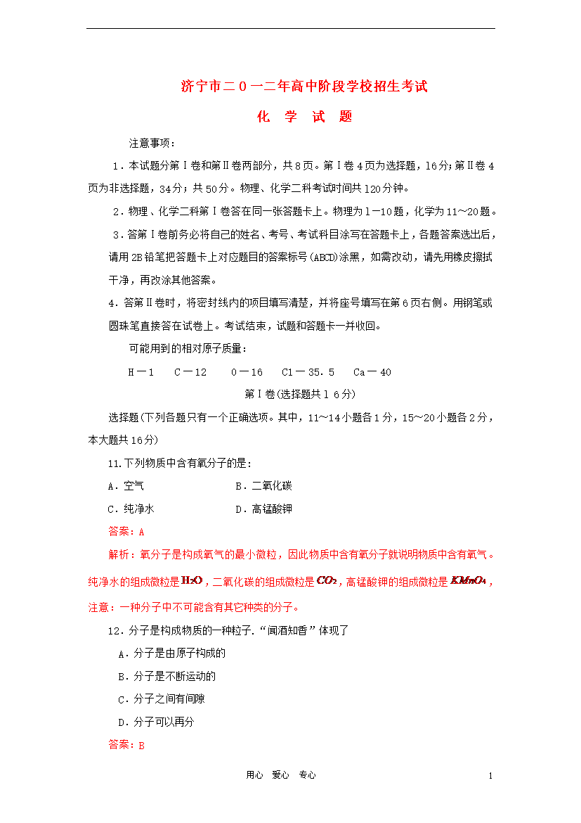 试题-山东-2012_山东省济宁2012年中考化学真题试题2(带解析)