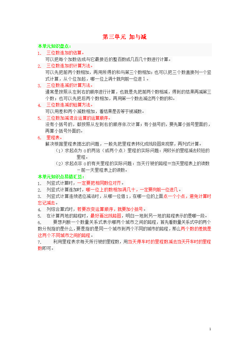 素材-全国-2019_2018-2019学年三年级数学上册 第三单元 加与减知识梳理素材 北师大版