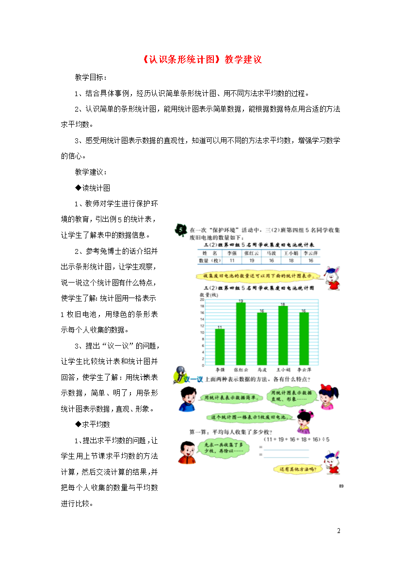 素材-全国-2019_四年级数学上册 第8单元《平均数和条形统计图》(认识条形统计图)教学建议 冀教版
