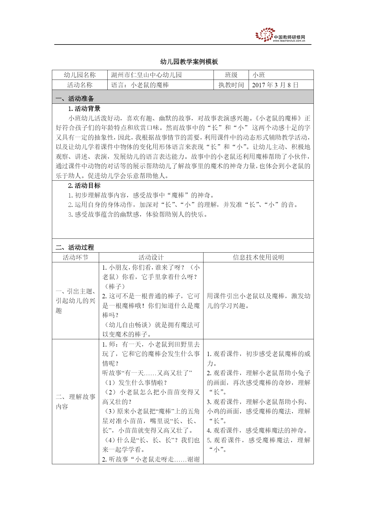 2:幼儿园教学案例模板-语言:小老鼠的魔棒