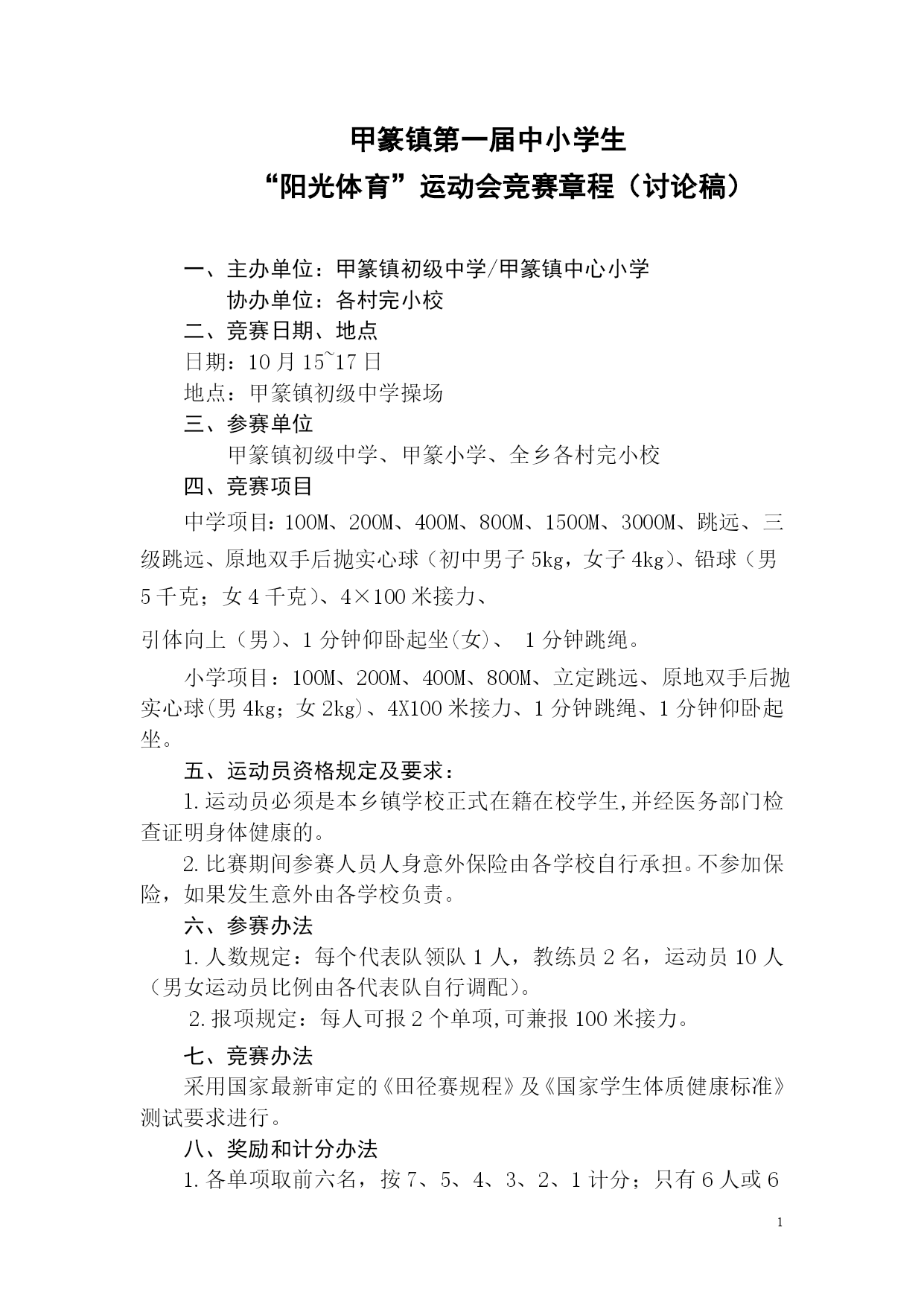 1-3:小学第1届阳光体育运动会竞赛规程、报名表